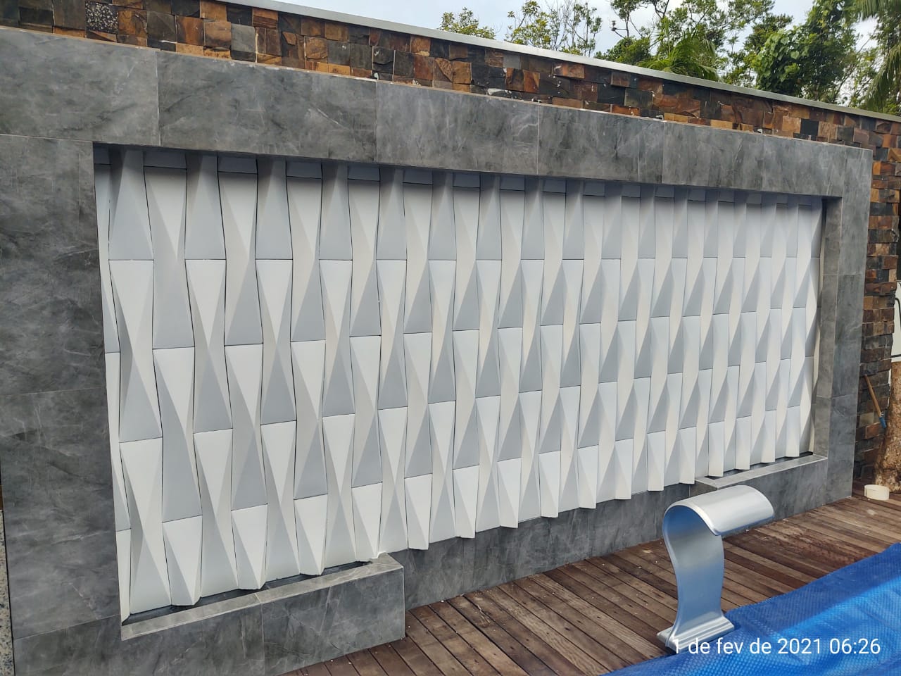 Descrição do produto: Revestimento 3D de parede fabricado em cimento (concreto) de alta resistência e durabilidade com ótimo acabamento. Ótimo para áreas externas mas pode também ser utilizada em áreas internas.