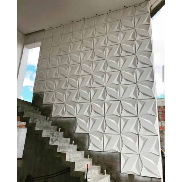 Descrição do produto: Revestimento 3D de parede fabricado em cimento (concreto) de alta resistência e durabilidade com ótimo acabamento. Ótimo para áreas externas mas pode também ser utilizada em áreas internas.